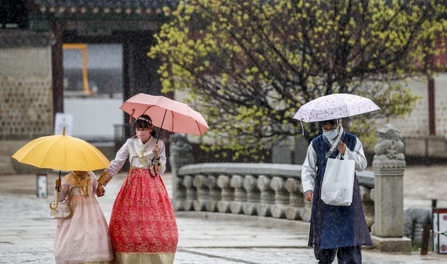 낮 최고기온은 서울 22도, 인천 19도, 수원 22도, 춘천 21도, 강릉 21도, 청주 23도, 대전 22도, 전주 21도, 광주 19도, 대구 21도, 부산 19도, 제주 20도다.