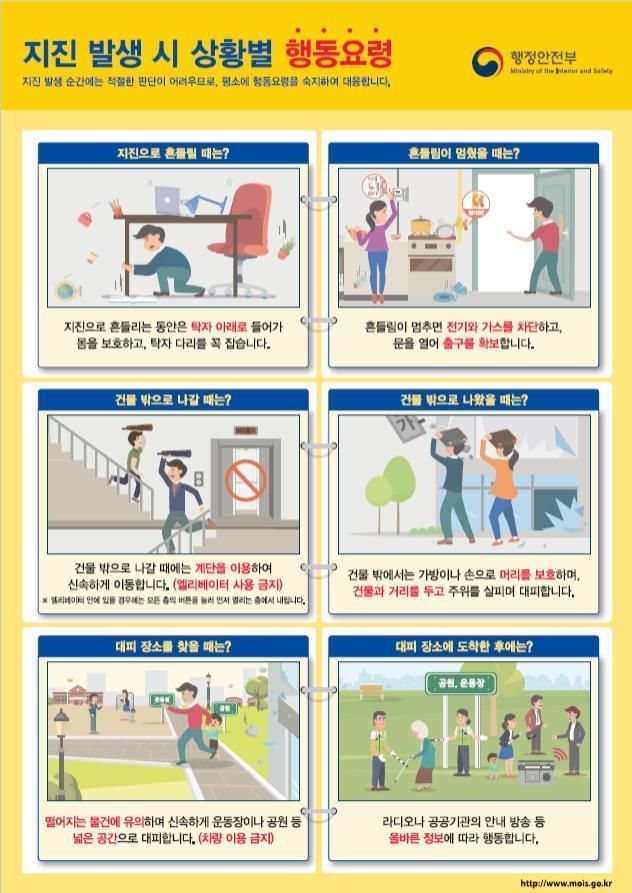 김성호 재난안전관리본부장은 "지진 발생 시 신속한 대응을 위해 기관별로 위기관리 매뉴얼에 따른 임무·역할을 점검하고 국민께서도 혹시 모를 상황에 대비해 행동요령을 숙지해 주시길 당부드린다"라고 말했다.