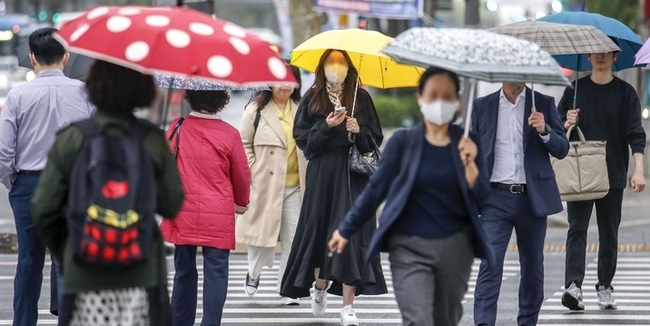 낮 최고기온은 서울 25도, 인천 23도, 수원 24도, 춘천 25도, 강릉 26도, 청주 24도, 대전 22도, 전주 22도, 광주 20도, 대구 22도, 부산 21도, 제주 22도다.