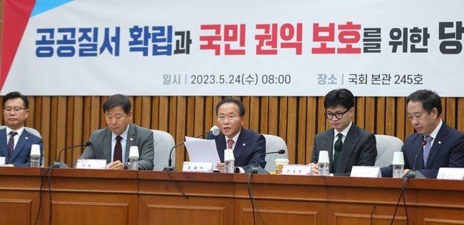 [시사뉴스 홍경의 기자] 국민의힘과 대통령실, 법무부, 행정안전부, 경찰청, 서울시는 24일 한 목소리로 불법시위 근절을 다짐했다. 당정은 오전 0시부터 오전 6시까지 야간 집회를 금지하는 내용 등을 담은 '집회 및 시위에 관한 법률'(집시법) 개정을 공식화한 바 있다.