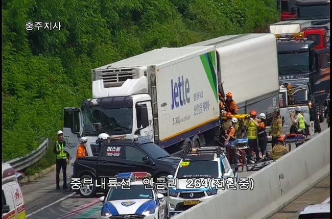 [시사뉴스 홍경의 기자] 경기 여주시 중부내륙고속도로 상행 여주분기점 인근에서 4중 추돌 사고가 나 21명이 다쳤다.