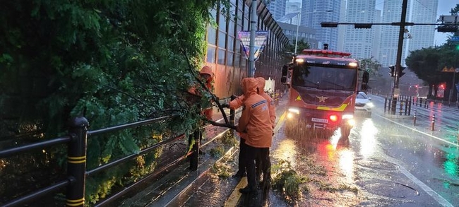 또 부산 곳곳에서 강풍에 흔들리는 간판, 차량 신호기, 가로수, 공사장 자재·건물자재, 차단기 스파크 발생 등에 대한 안전조치도 이뤄졌다.