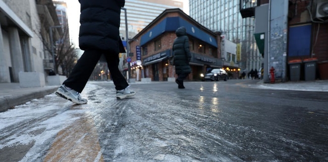 최근 눈이 내려 쌓인 지역에서는 낮 동안 녹은 눈이 밤사이 기온이 영하로 떨어지며 다시 얼어붙어 빙판길이나 도로 살얼음(블랙아이스)이 되는 곳이 있겠다. 낮에도 기온이 낮은 이면도로나 골목길, 경사로, 그늘진 도로 등에 빙판길이 나타날 수 있겠다.