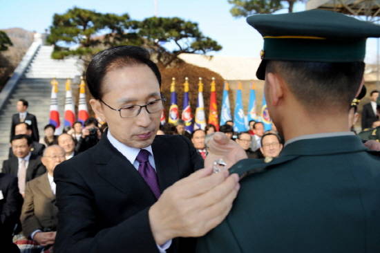 이 대통령은 이어 “여러분들은 G20세대의 젊은 군인으로서 넘치는 자신감으로 거침없이 도전하는 세대”라고 말했다.