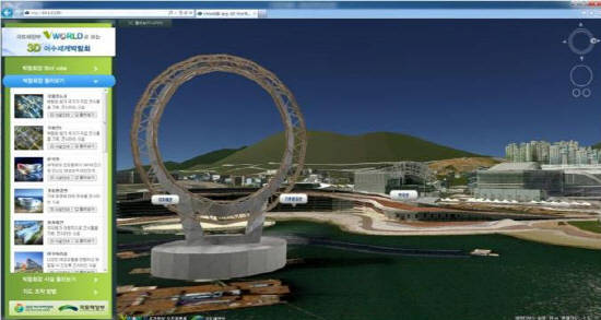 이 서비스는 우리나라의 첨단 공간정보기술과 IT기술을 활용해 세계 최초로 행사장 실제 모습을 컴퓨터에서 볼 수 있도록 3차원 사이버공간으로 제작해 인터넷만 연결되면 누구나 볼 수 있도록 구축한 것으로 남극기지, 아프리카 등 70억 전 세계인들이 여수 엑스포와 함께 할 수 있을 것으로 기대된다.