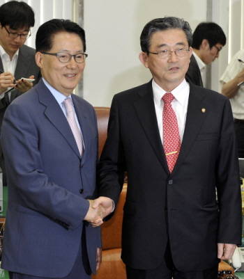 새누리당 이한구 신임 원내대표와 민주통합당 박지원 원내대표 겸 비상대책위원장이 10일 첫 만남에서 "이·박 연대를 결성하자"고 구두 합의하는 등 훈훈한 분위기를 연출했다.