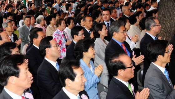 새누리당 황우여 대표를 비롯해 민주통합당 박지원 비상대책위원장, 자유선진당 이인제 비상대책위원장은 이날 오전 조계사에서 열린 부처님 오신날 봉축 법요식에 참석, 나란히 자리를 같이했다.