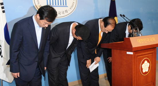 새누리당 황우여 대표는 13일 정두언 의원 체포동의안 부결 사태와 관련, "무거운 책임을 통감하며 국민여러분 앞에 진심으로 사죄드린다"고 말했다.