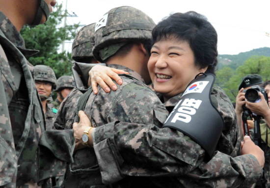 일정을 마친 박 전 위원장은 군부대 앞에 모인 50여명의 장병 중 일부 장병과 포옹을 나눴다. 그들은 "열심히 하겠습니다", "사랑합니다"라고 화답했다.