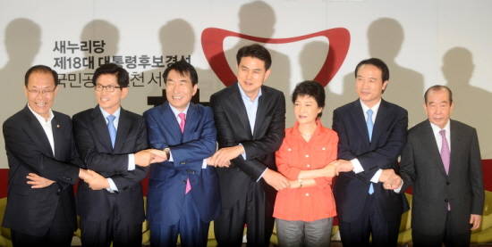 임태희 전 대통령실장, 박근혜 전 비상대책위원장, 김태호 의원, 안상수 전 인천시장, 김문수 경기지사 등 새누리당 경선 후보 5명은 21일부터 내달 19일까지 한달간 본격적인 선거 유세를 시작한다.