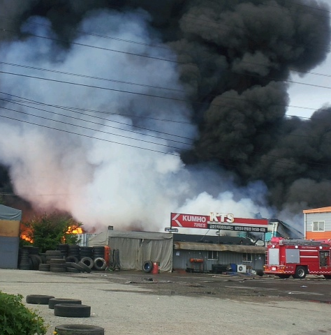 <속보 1보> 인천의 한 페인트 원료공장에서 원인 불상의 화재가 발생 인근 공장 전체로 번져 소방당국이 광역 1호를 발령하고 진화작업을 벌이고 있으나 페인트 원료 등으로 어려움을 격고 있다.