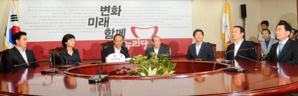 황우여 대표, 김수한 경선관리위원장, 대선 경선 후보 5인(김문수·김태호·박근혜·안상수·임태희) 등은 5일 오후 서울 여의도 당사에서 연석회의를 열고 공천헌금 문제로 인한 갈등 수습 방안 등을 논의하고 이같이 합의했다고 황영철 대표 비서실장이 전했다.