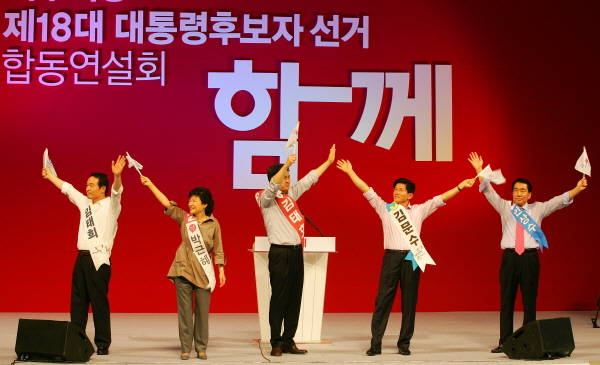 김문수 임태희 김태호 후보는 이날 오후 강원 춘천시 호반체육관에서 열린 새누리당 제18대 대통령후보자 선거 강원합동연설회에 참석, 네거티브 공세를 이어갔다. 이들의 공세에 대해 박 후보는 비교적 담담한 모습으로 대응하며 "상대방을 공격하더라도 기본적인 배려가 있어야 한다"고 일침을 가하기도 했다.