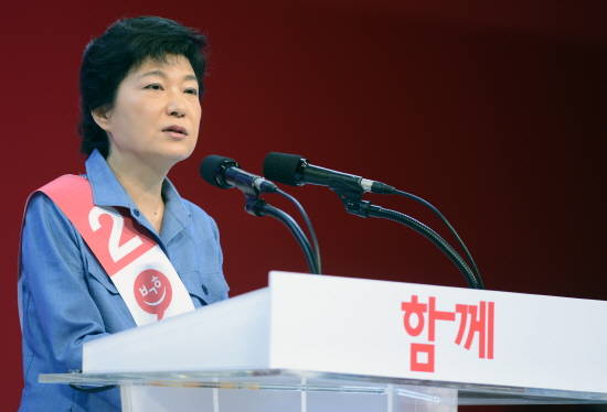 경선 후보 중 가장 먼저 연설자로 나선 박 후보는 우선 대통령 박근혜가 만들 미래 대한민국의 청사진을 밝히는데 주력했다.