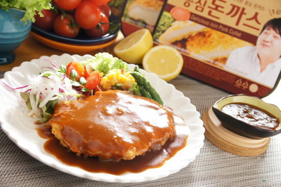 가격은 4만9900원이다. 등심돈까스 9팩과 치즈돈까스 3팩, 특제 소스 1병으로 구성됐다.