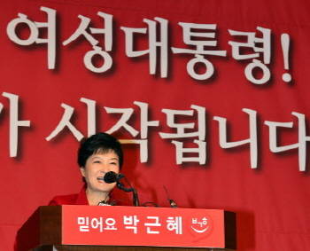 박 후보는 이날 오후 서울 중구 태평로 1가 프레스센터에서 열린 '여성유권자연맹 해피 바리어스 콘서트'에 참석해 이같이 언급했다.