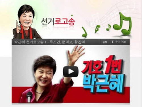 한편 새누리당은 '박근혜가 죽여줘요'란 가사로 논란이 된 일부 선거 로고송은 폐기하고 재녹음키로 했다.