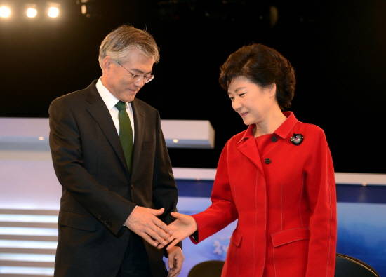 이에 문 후보는 “지금 말한 선거사무실은 민주당의 중앙당사다. 중앙당사 안에 선대위가 입주해있다. 확인하기 바란다”면서 “새누리당의 불법선거 사무실은 박 후보 선대위의 국정홍보대책위원장 겸 SNS본부장 이라는 사람이 사무실 비용을 다 댔다고 해 결국은 선대위가 운영하는 사무실인데 왜 한 마디도 하지 않고 사과도 안하느냐”고 반박했다.