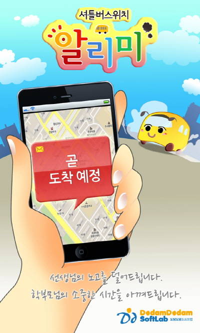 ‘셔틀버스위치 알리미’의 서비스 이용은 무척 단순하다. 회사 홈페이지(www.ddsoftlab.com)에 회원가입하지 않고도 앱을 다운받을 수 있고, 설치 후 바로 사용 가능하다.