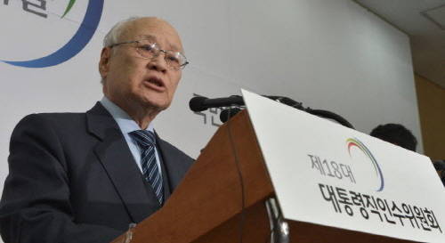 김용준 대통령직 인수위원장은 21일 서울 삼청동 인수위 공동기자회견장에서 열린 기자회견에서 “청와대 조직개편안은 지난번 정부조직개편안에 이어 박근혜 당선인이 추구하는 국정철학과 목표를 구현하기 위한 중요한 메시지를 담았다”고 소개했다.