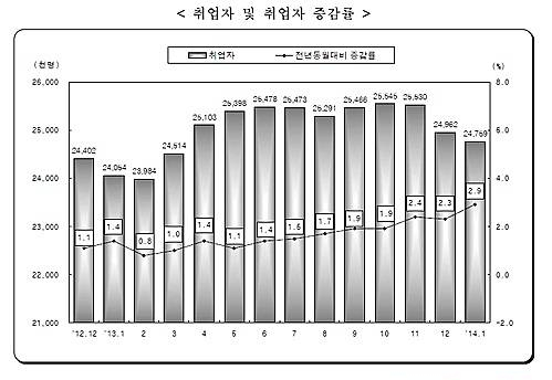통계청이 12일 발표한 '1월 고용동향'에 따르면 취업자는 2475만9000명으로 지난해 같은 기간보다 70만5000명 늘었다.