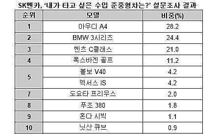 SK엔카 관계자는 "소비자들이 경제적이면서 효율성이 높은 수입차에 많은 관심을 보이면서 2000㏄ 미만 저배기량차, 준중형차의 인기가 높아지고 있다"고 말했다.