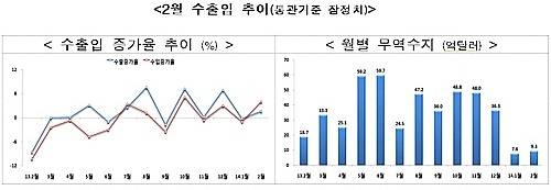 [시사뉴스 우동석 기자] 2월 무역수지가 흑자를 기록했다. 하지만 선박지연 등으로 증가율은 당초 기대에 못미쳐 2분기 이후에나 본격적인 회복세를 기대할 수 있을 것이라는게 관련업계의 전망이다.