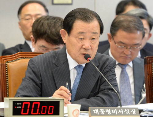 비서실장이 제 역할을 못하고 있다는 지적에 대해서는 "저 나름대로는 최선을 다하고 있다"면서 "저도 충분히 대통령께 안되는 것은 안된다고 말씀드리고 있다"고 반박했다.