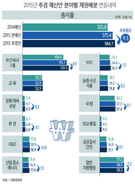 특히 추경 예산 중 절반 가량이 세수 부족분을 메꾸기 위한 '세입보존용' 추경인데다 메르스 및 가뭄 피해에 대한 직접 지원은 매우 미흡하다고 보고 대폭적인 수정에 나설 것이라고 밝혔다.
