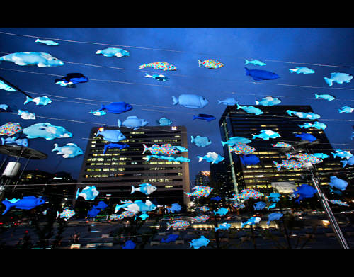 특히 토요일 오후 9시, 공중퍼포먼스 프로젝트 ‘날다’는 3D 플라잉 시스템을 활용한 판타지 거리극을 선보인다. 광주유니버시아드 개막공연을 마치고 이번 축제에 참여한 ‘날다’ 팀은 이번 주말 화려한 퍼포먼스를 펼친다. 중앙계단 측면에는 ‘물고기의 꿈’이라는 미술작품이 설치되며, 젊은 예술가들이 자신의 작품을 전시, 판매하는 예술시장 ‘소소’도 대극장 앞에서 열린다.