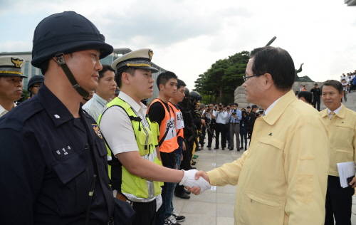 [시사뉴스 강민재 기자]정의화 국회의장은 19일 오후 국회의사당 본관에 마련된 을지연습 종합상황실을 방문, 훈련에 참가 중인 관계자들을 격려했다.