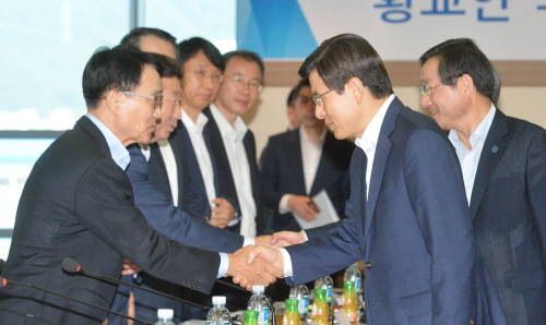 이날 간담회에는 임금피크제를 10년 전 도입한 에몬스가구 대표를 비롯해 지난해 도입한 두산차량산업 대표, 올해 도입한 선창산업과 심팩 대표, 노조 간부, 삼성 SK LG 롯데 포스코 한화 등 대기업 임원 등이 참석했다.