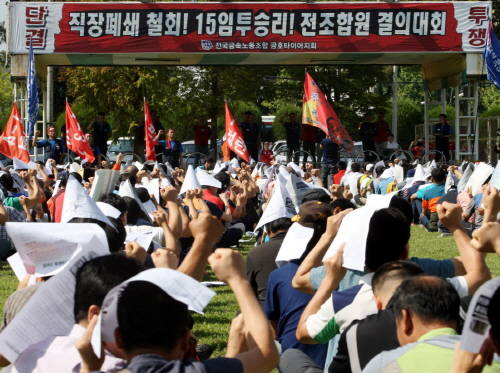 [시사뉴스 장용석 기자] 22일째 전면 파업을 벌이고 있는 금호타이어 노조가 7일 회사 측의 직장 폐쇄를 규탄하는 조합원 결의대회를 열고 "성실한 자세로 교섭에 나설 것"을 촉구했다.