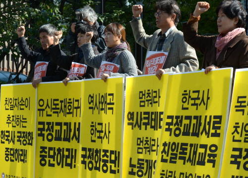 이들은 "한국사교과서 국정화는 반역사적 폭거이자 '제2의 유신 선포'"라며 "국민의 역사의식을 통제·지배하려는 전체주의적 발상"이라고 주장했다.