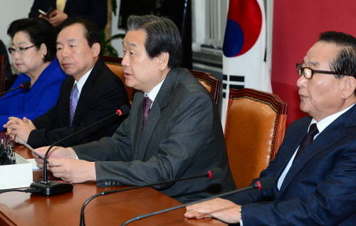 새누리당 김무성 대표는 이날 국회에서 열린 최고위원회의에서 "이제 비뚤어진 역사교육의 중심을 바로잡기 위한 올바른 역사교과서 집필은 정부에 맡기고, 정치권은 민생과 경제에 매진할 때"라고 강조했다.