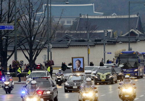 [시사뉴스 김정호 기자]고(故) 김영삼 전 대통령의 국가장이 엄수된 26일, 영면에 들기 앞서 고인의 마지막 나들이가 시작됐다. 오후 1시30분 서울대병원을 떠난 김 전 대통령의 운구 차량은 광화문~마포대교~국회의사당~상도동 자택을 지나 국립현충원으로 향했다.