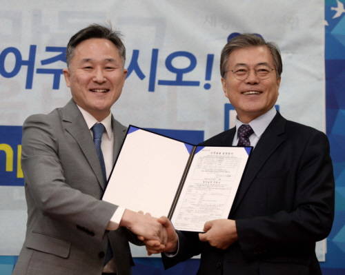 표 전 교수는 기자회견을 마친 뒤 문재인 대표에게 직접 입당원서를 제출했다.