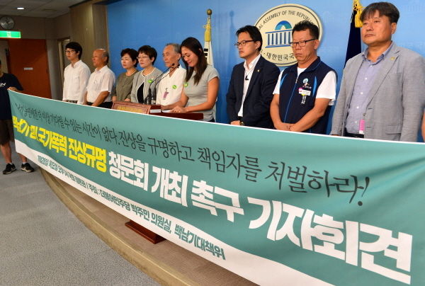 [시사뉴스 유한태 기자] 작년 11월 민중총궐기 대회에 참가했다가 경찰이 쏜 물대포에 맞아 8개월 넘게 사경을 헤매고 있는 백남기 농민의 가족과 시민단체가 조속한 국회 청문회 개최를 촉구했다.