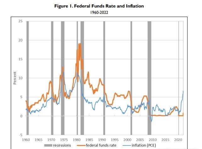 제롬 파월 연준 의장은 1965년, 1984년, 1994년 긴축 통화 이후 연착륙이 발생했으며 2020년과 같은 일부 다른 경기 침체는 긴축 정책으로 인한 것이 아니라고 주장했다. 그러나 1965년과 1994년은 인플레이션이 낮았고 1984년엔 5% 미만이었다고 CRS는 지적했다.