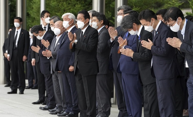아베 전 총리의 장례식은 이날 오후 도쿄 미나토구의 한 사찰인 조죠지(増上寺)에서 열렸다. 장례식에는 부인인 아베 아키에 여사와 유족 및 기시다 후미오 총리와 모테기 도시미쓰 간사장 등이 참석했다.