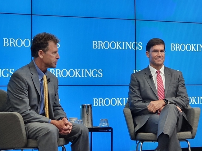 에스퍼 전 장관은 14일(현지시간) 브루킹스연구소가 주최한 국방전략 및 강대국 경쟁 관련 대담에서 "세계에서 가장 큰 화약고는 여전히 동북아시아"라며 "세계의 그 부분에서 한반도에서의 분쟁 가능성은 핵분쟁(nuclear exchange)으로 확대될 수 있다"라고 지적했다.