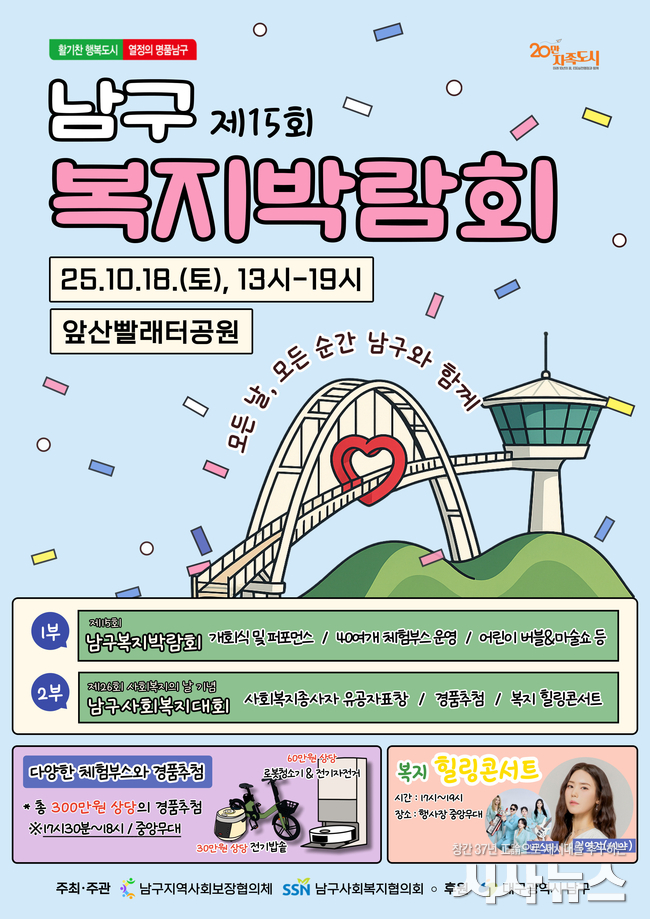 [시사뉴스 장시목 기자]대구 남구(구청장 조재구)는 오는 10월 18일(토) 앞산빨래터공원에서 『제15회 남구복지박람회』를 개최한다고 밝혔다.