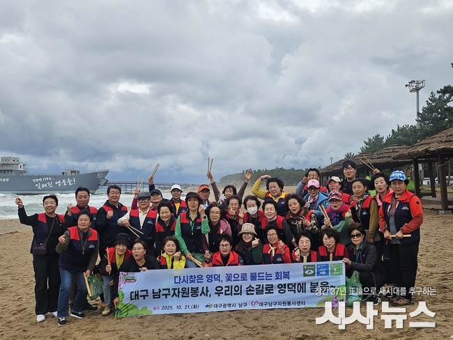 [시사뉴스 장시목 기자]대구 남구(구청장 조재구)는 지난 10월 21일 대구남구자원봉사센터(센터장 이창지)와 함께 자원봉사자 40명이 올해 3월 대형 산불 피해를 겪은 경북 영덕지역에서 재난대응 중심 봉사활동을 펼쳤다.