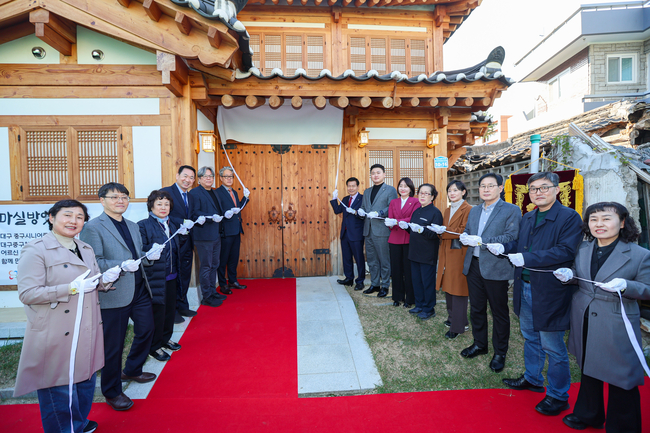 [시사뉴스 이성동 기자] 대구 중구(구청장 류규하)는 지난 3일, 동산동 한옥마을 공유공간(국채보상로102길 10-16)에서 신규 노인일자리 사업단 ‘방앗간 마실’의 개소식을 개최했다고 밝혔다.