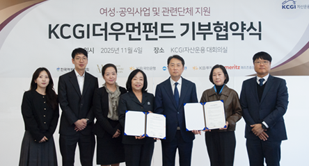 이번 협약을 통해 KCGI는 우먼펀드 수익금 중 1,000만원을 기부 할 예정이며, 여경협은 해당 기부금을 여성기업 역량강화 및 미래여성경제인 육성 등 다양한 지원사업에 활용할 계획이라 밝혔다.