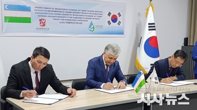 [시사뉴스 장시목 기자]계명문화대학교(총장 박승호)는 2025년 10월 27일 우즈베키스탄 타슈켄트에서 TIIAME 국립연구대학교(Tashkent Institute of Irrigation and Agricultural Mechanization Engineers National Research University, 이하 TIIAME NRU) 및 영국문화원(British Council)과 각각 협약을 체결하며, 우즈베키스탄 직업교육 혁신과 글로벌 기술인재 양성을 위한 국제협력의 폭을 넓혔다.