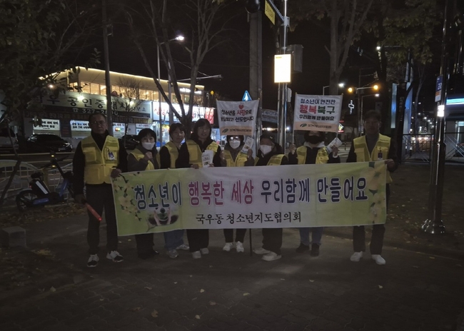 [시사뉴스 이성동 기자] 대구 북구 국우동 청소년지도협의회(위원장 홍석희)는 11월 18(화) 청소년 일탈행위를 방지하고 유해환경으로부터 청소년을 보호하기 위한 ‘청소년 유해환경 개선 홍보 캠페인’을 실시하였다.