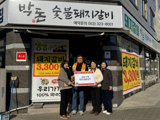 [시사뉴스 이성동 기자] 대구 북구 관문동 지역사회보장협의체(공동위원장 조혜정·김귀남)는 사수동에 위치한 박돈숯불갈비(대표 박지만)에서 11월 20일(목) 대구사회공동모금회 기부 캠페인에 동참하는‘착한가게’현판 전달식을 가졌다.