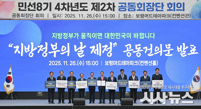 [시사뉴스 장시목 기자] 대한민국시장・군수・구청장협의회(대표회장 조재구 대구 남구청장)는 26일 보령 머드테마파크에서 민선 8기 4차년도 제2차 공동회장단회의를 개최하고, 지방정부의 위상 강화와 실질적 분권 실현을 위한 주요 현안을 논의하였다.