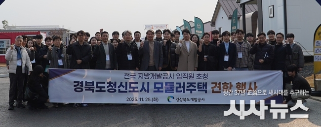 [시사뉴스 장시목 기자]경북개발공사(사장 이재혁)는 지난 11월 25일, 경북도청신도시 모듈러주택단지에서 전국 지방개발공사 10개 기관 40여 명이 참석한 가운데 견학 행사를 개최했다고 밝혔다. 이번 행사는 최근 잇따른 산불로 주거 피해를 입은 이재민의 신속한 주거 회복을 지원하기 위한 모듈러주택 도입 사례를 공유하고, 전국 공공기관 간 협력 기반을 강화하기 위해 마련되었다.